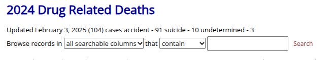 All told, the Illinois Record has calculated over 740 drug-related deaths during Summers’ tenure, with nearly all ruled accidental, with a handful of deaths categorized as suicide and undetermined each year. The Illinois Record identified a handful of drug-induced homicides indictments in WIll County, but each was first ruled an accident, suicide, or undetermined, and only later reversed through the efforts of victim families and other law enforcement branches.
