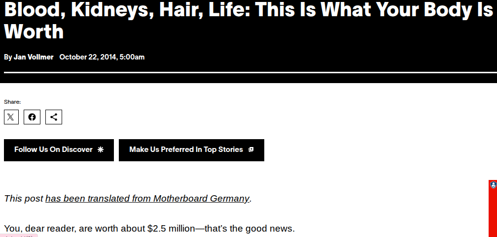 Vice Media/ considering inflation since 2014 the human body would be worth over 3.4 million dollars in 2025 dollars.