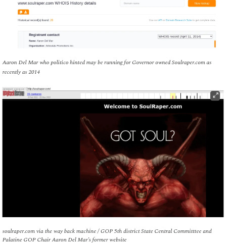 Internet Archive of the single page of Aaron Del Mar’s Soul Raper.com