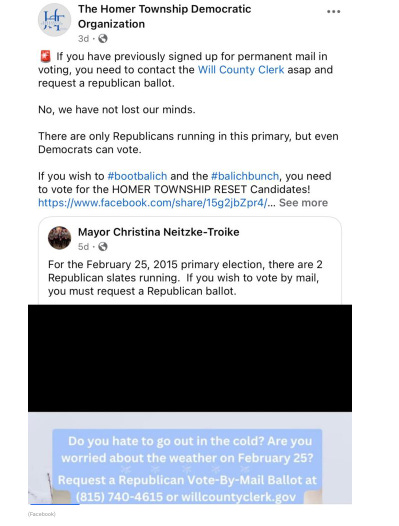 Christine Clausen, a self-proclaimed grassroots leader, couldn’t even secure a re-election win for Steve Balich—despite the fact that his opponents, the "Reset Slate," had open support from the Homer Glen Democratic Party. Worse yet, Balich only needed to win the Republican primary to stay in office.