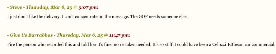 Capitol Fax / Comments from a recent article asking readers to “rate Kathy Salvi’s interview”