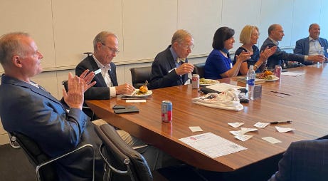 IlGOP Co-Chair Joan Lasonde (left), Aurora Mayor Richard Irvin (center), ILGOP finances committee member Lynn O’Brien (right)