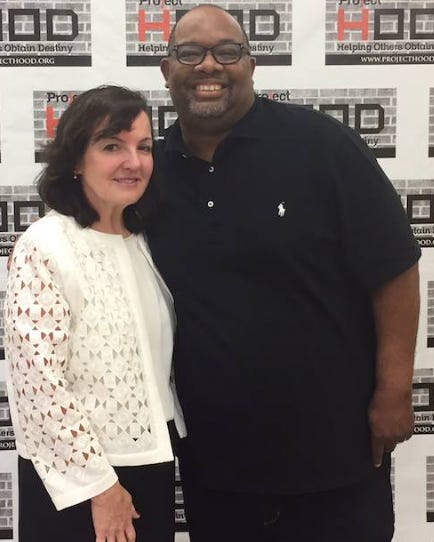 ILGOP Co Chair Joan Lasonde (left) with ILGOP favorite Pastor Corey Brooks (right)