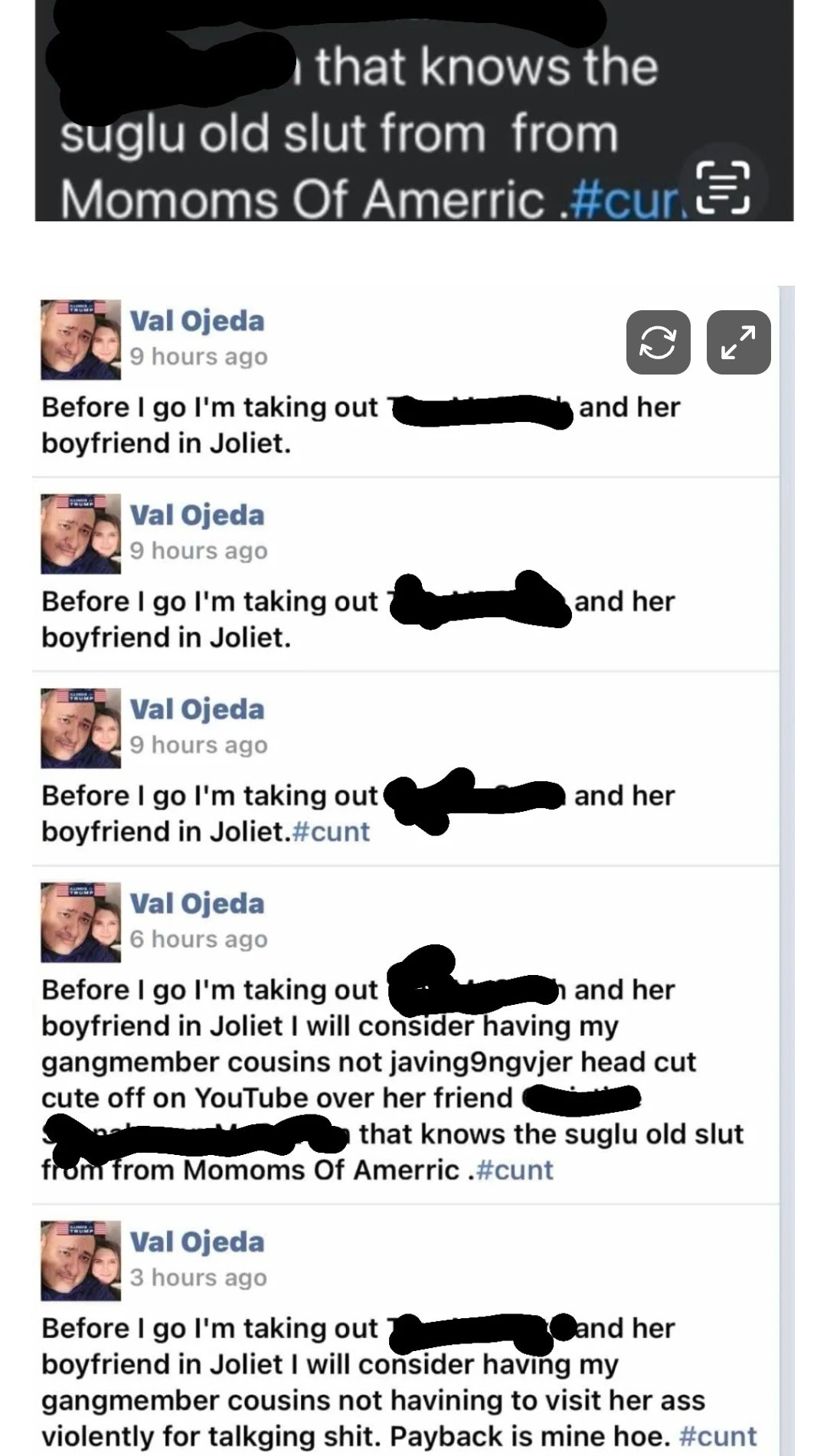 Facebook/ Some of the threats from Val “Stolen Valor” Ojeda